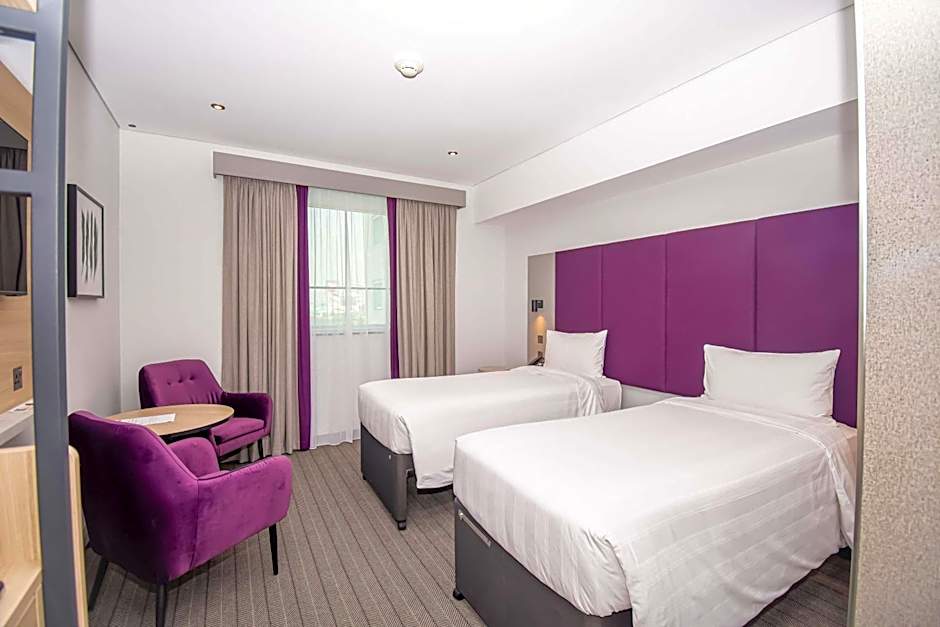 This spacious air-conditioned room has a queen bed and a flat-screen satellite TV. The room is decorated with modern furnishing in purple tones and carpeted floors. Smoking is permitted in this room.